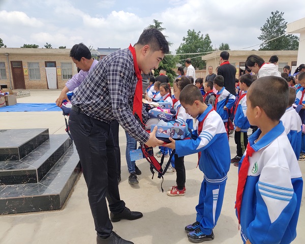 6 月25日,侯云昌書記一行先后前往金橋慈善基金會出資興建的凈口立尊第二小學(xué)和中原鄉(xiāng)田站小學(xué),慰問當(dāng)?shù)亓羰貎和?,受到?dāng)?shù)貛熒臒崃覛g迎。慰問現(xiàn)場,金橋慈善基金會分別向兩所學(xué)校的老師和同學(xué)發(fā)放了慰問金及助學(xué)金11 萬元,并發(fā)放了臺燈、床品、書包、水壺等慰問品近6 萬元,集團(tuán)員工自發(fā)捐贈課外書籍110 余冊。同時(shí),金橋慈善基金會向中原鄉(xiāng)田站小學(xué)捐贈100 萬元,用于教學(xué)樓的重建。捐贈儀式后,金橋焊材集團(tuán)黨委副書記、金橋慈善基金會秘書長李紅梅講話,學(xué)校校長致感謝詞。