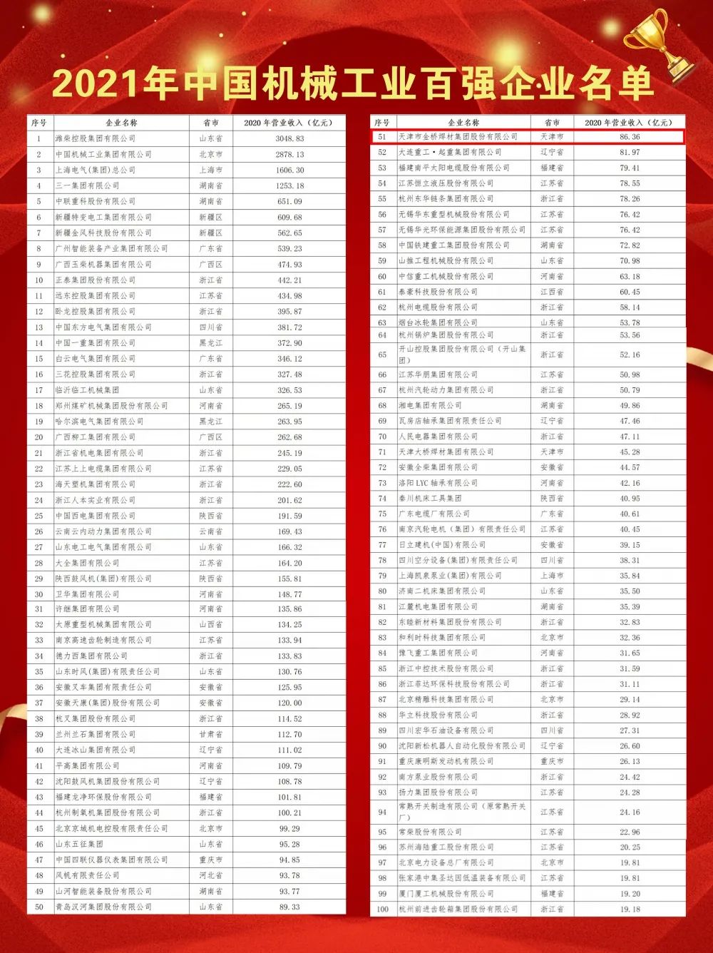 位列51名!天津金橋焊材集團(tuán)上榜機(jī)械工程百強(qiáng)名單