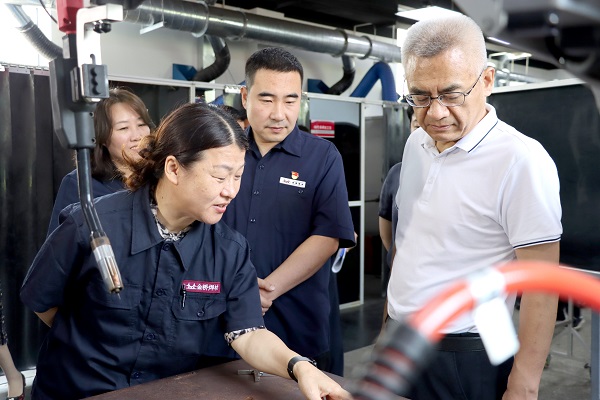 隨后,賈堤一行走進(jìn)工業(yè)機(jī)器人實(shí)訓(xùn)基地,深入了解了集團(tuán)技能人才培養(yǎng)與焊材智能化生產(chǎn)線建設(shè)情況。賈堤指出,金橋集團(tuán)要加大自主研發(fā)投入,夯實(shí)技術(shù)底蘊(yùn),提升品牌價值,拓寬人才引進(jìn)渠道,進(jìn)一步加大吸納人才的力度,促進(jìn)高質(zhì)量充分就業(yè)。