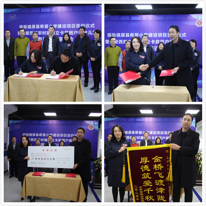 1月10日,捐助鎮(zhèn)原縣希望小學建設項目簽約儀式,暨關愛西部農(nóng)村建檔立卡貧困戶留守兒童專題座談會在金橋焊接培訓基地圓滿召開?;顒佑杉瘓F黨委副書記、金橋慈善基金會秘書長李紅梅主持。