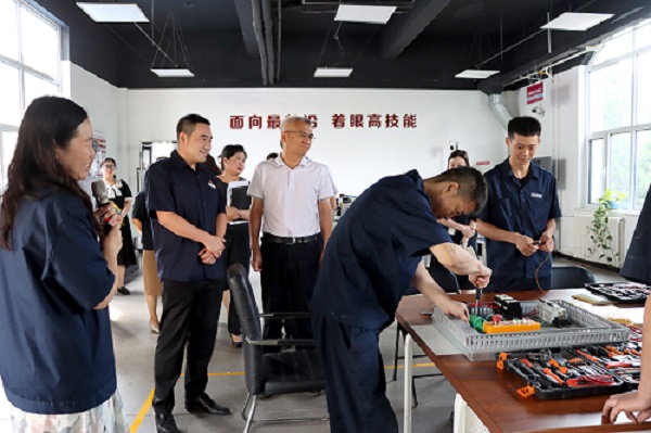 隨后,賈堤一行走進(jìn)工業(yè)機(jī)器人實(shí)訓(xùn)基地,深入了解了集團(tuán)技能人才培養(yǎng)與焊材智能化生產(chǎn)線建設(shè)情況。賈堤指出,金橋集團(tuán)要加大自主研發(fā)投入,夯實(shí)技術(shù)底蘊(yùn),提升品牌價值,拓寬人才引進(jìn)渠道,進(jìn)一步加大吸納人才的力度,促進(jìn)高質(zhì)量充分就業(yè)。