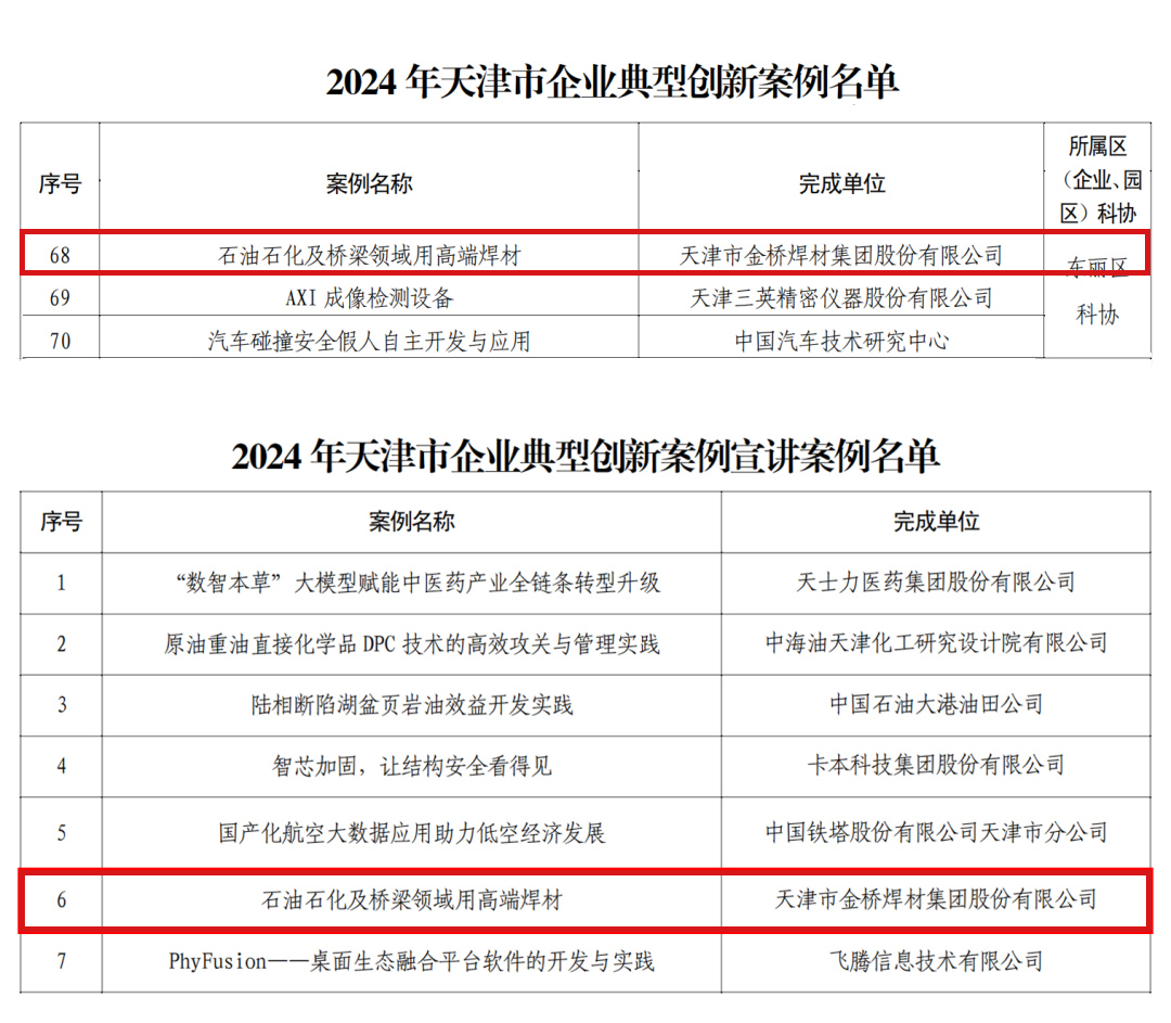 金橋焊材集團創(chuàng)新案例成功入選天津市企業(yè)典型創(chuàng)新案例